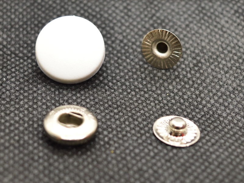 Использование пластиковой крышки позволяет подобрать цвет практически для любой расцветки изделия. Легкость монтирования на одежде обеспечивается хорошо подобранными друг к другу составными частями. Основных частей 3, они металлические. Для их монтажа используют специальный пресс или монтируют вручную. Четвертая часть, это сама пластиковая крышка, которая защелкивается на металлическую поверхность кнопки.