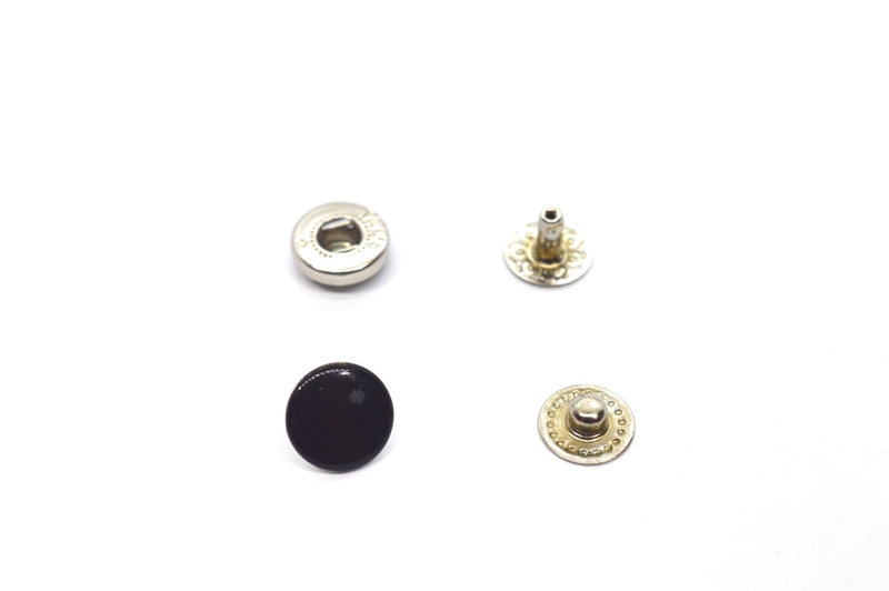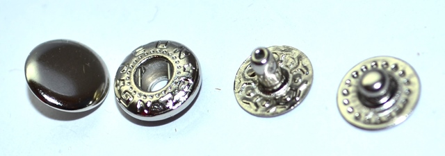 Кнопка служит для соединения частей готового изделия.Состоит из двух металлических частей на лицевой и изнаночной стороне. Это два элемента : болтообразный круглой формы и крышечка с внутренним фиксатором болта. Фиксация проходит за счет силы упругости пружины, материала самой кнопки.