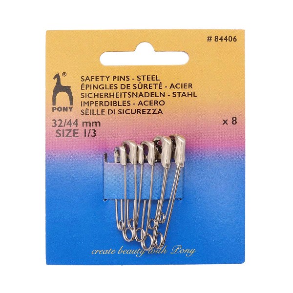 84406 Булавки английские 32-44мм, сталь, 8шт PONY