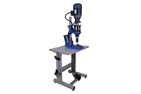 Пневматическая клепальная пресс орбитального типа На валу двигателя установлен шпиндель, в который вставляется пуансон определённого типа. В комплекте поставляются пуансон . Принцип работы клепального станка: пуансон во время вращения вала осуществляет гироскопические движения и при соприкосновении с заклёпкой равномерно формирует головку. Тем самым, замыкая неразрывное соединение повышенного качества. Клепальные станки применяются в различных отраслях машиностроения: для сборки мебельных механизмов, розеток, и других мелких заклепок .