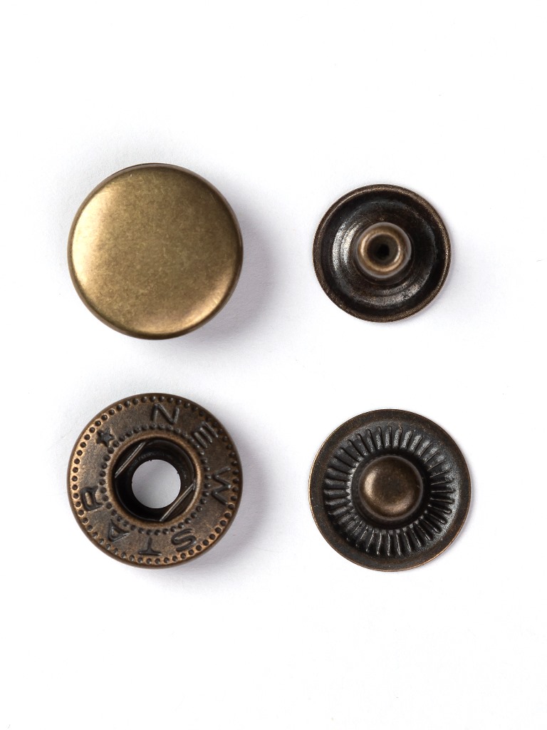 Кнопка 15мм Альфа сталь цв. Антик (уп 720шт)NewStar