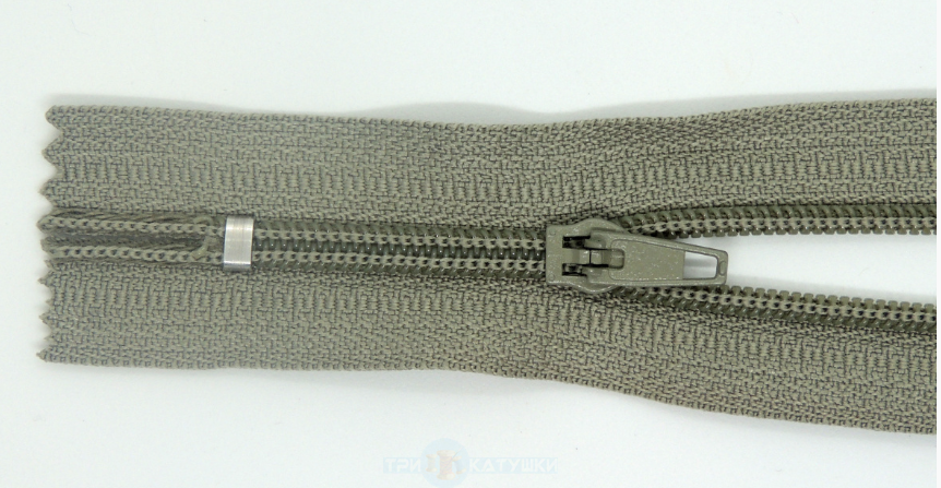 Молния спиральная тип 4 п/а (неразъемная) брючная 18 см №318 Серо-зеленый ( уп.100 шт.)