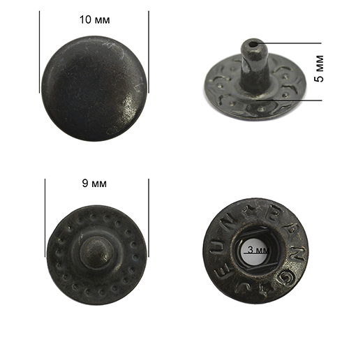 Кнопка VT-2 (10 мм) Альфа сталь цв. Оксид (уп. 50 шт) ProKnopka