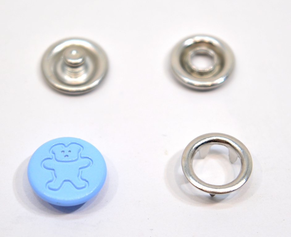Розн.уп. Кнопка с крышкой 9,5 мм МИШКА цв.Голубой (уп 20 шт.)