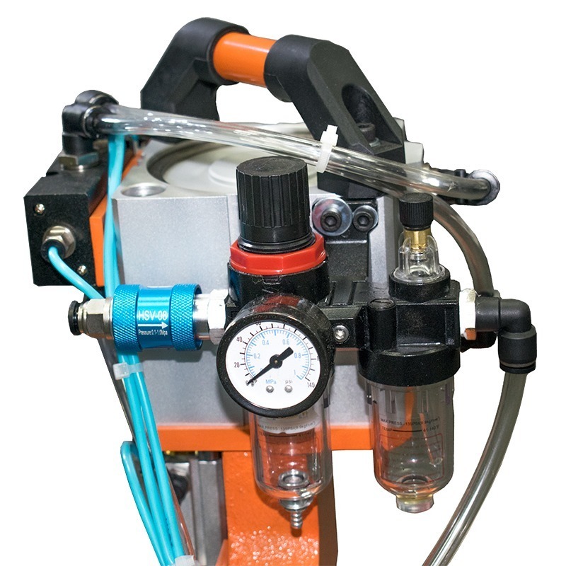 При работе с пневматическим оборудованием необходимо следить, чтобы в систему подавался очищенный воздух, который обогащён масляными частицами. Для правильной эксплуатации пресса, необходимы подключения к лубрикатору и осушителю воздуха