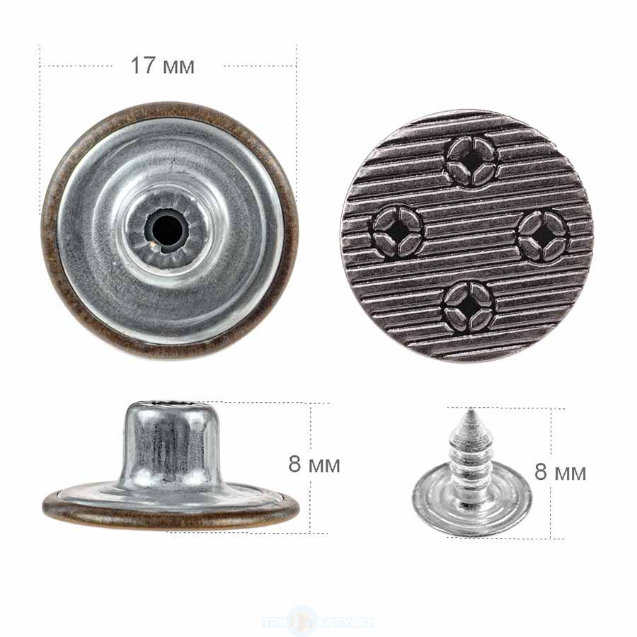 Пуговицы джинсовые в блистере 17мм (уп. 12шт.), Ромбики цв. черный никель