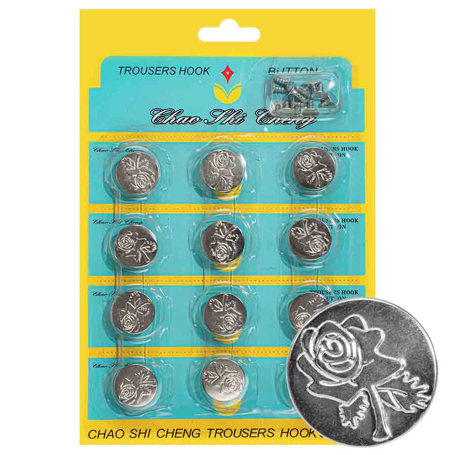 Пуговицы джинсовые в блистере 17мм (уп. 12шт.), Роза цв. никель