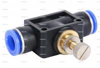 Прямой фитинг с краном, для присоединения двух трубок одинакового диаметра;Направление потока: