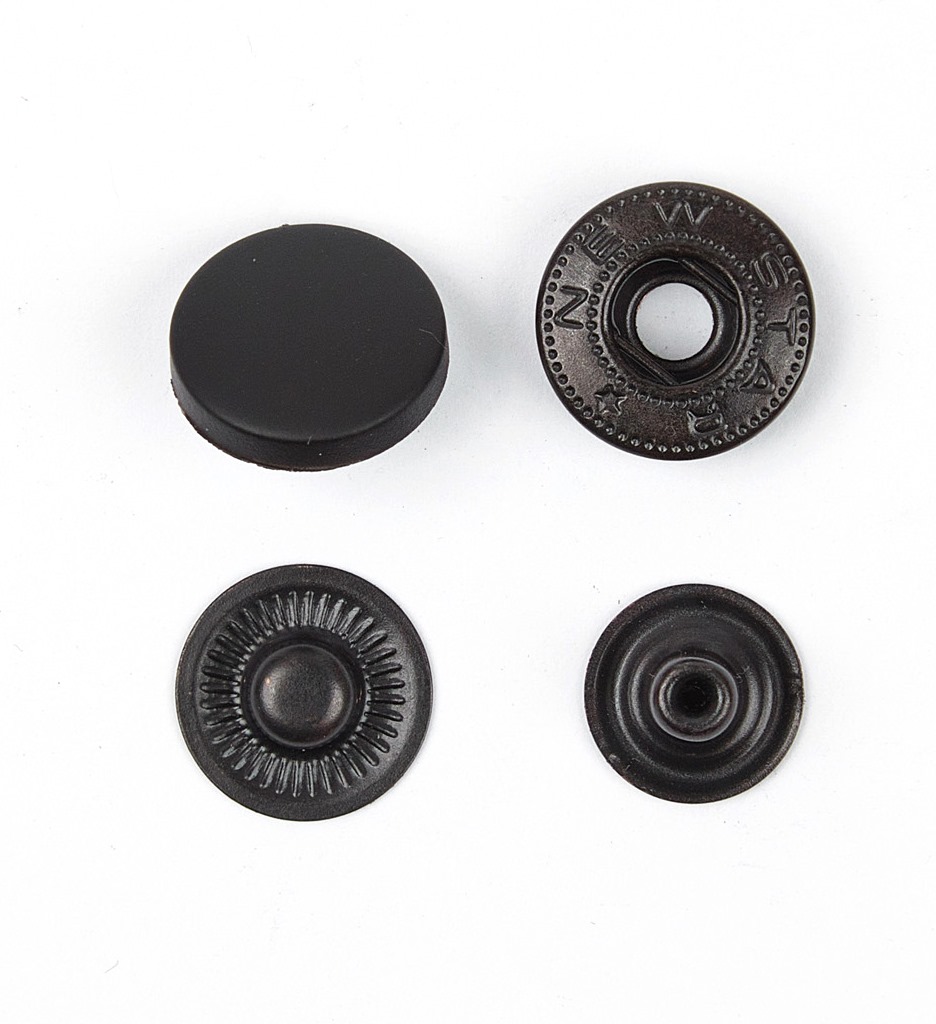 Кнопка 15мм Альфа с пластиковой крышкой SOFT TOUCH+3 части Оксид сталь (уп 720шт)NS