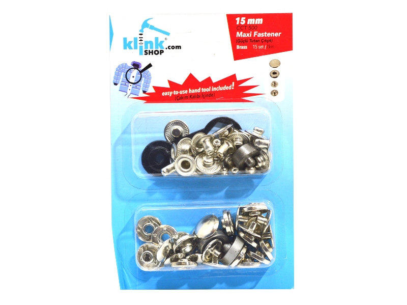15 комплектов фурнитуры, пробойник, приспособление для установки.