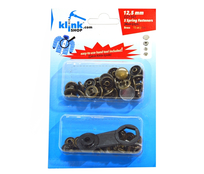 Кнопка в блистере арт.501 НЕРЖ. Альфа №54 12,5мм цв. Антик (уп.15 компл.) + Ручной установщик