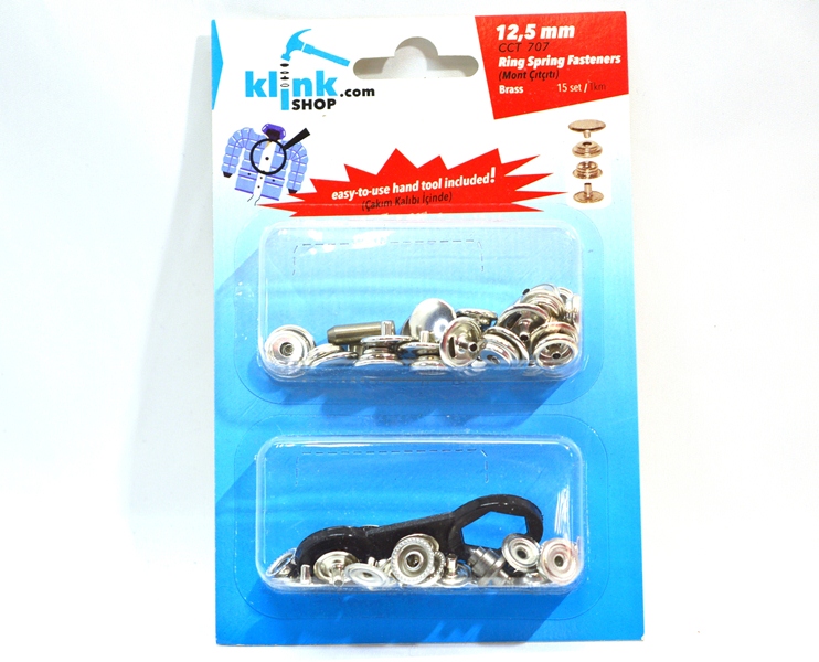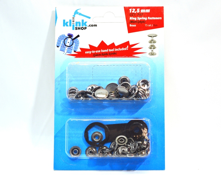 Кнопка в блистере арт.707 НЕРЖ. №61 мини 12,5мм цв. Никель (уп.15 компл.) + Ручной установщик