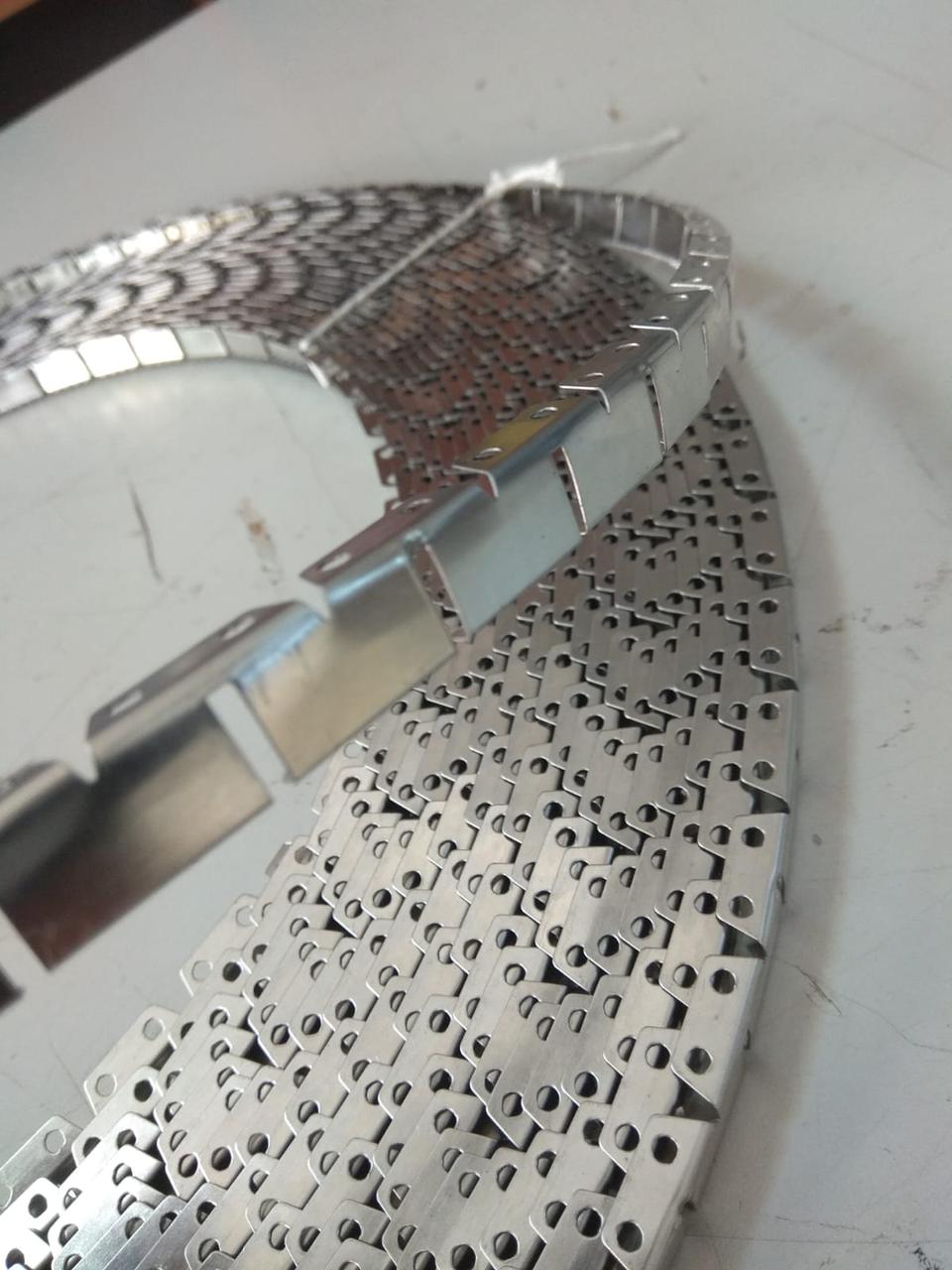 Лента потайногошва (крокодил) 10х9ммИгольчатая металическая полоска для скрытого крепежа ткани, кожи и других материалов без последующего крепления скобой. Позволяет сделать красивое, ровное соединение на лицевых поверхностях мебели. За счет V-образных вырезов позволяет делать радиусные, скругленные детали. Иголки находятся на краю полоски что позволяет удобно крепить ткани.