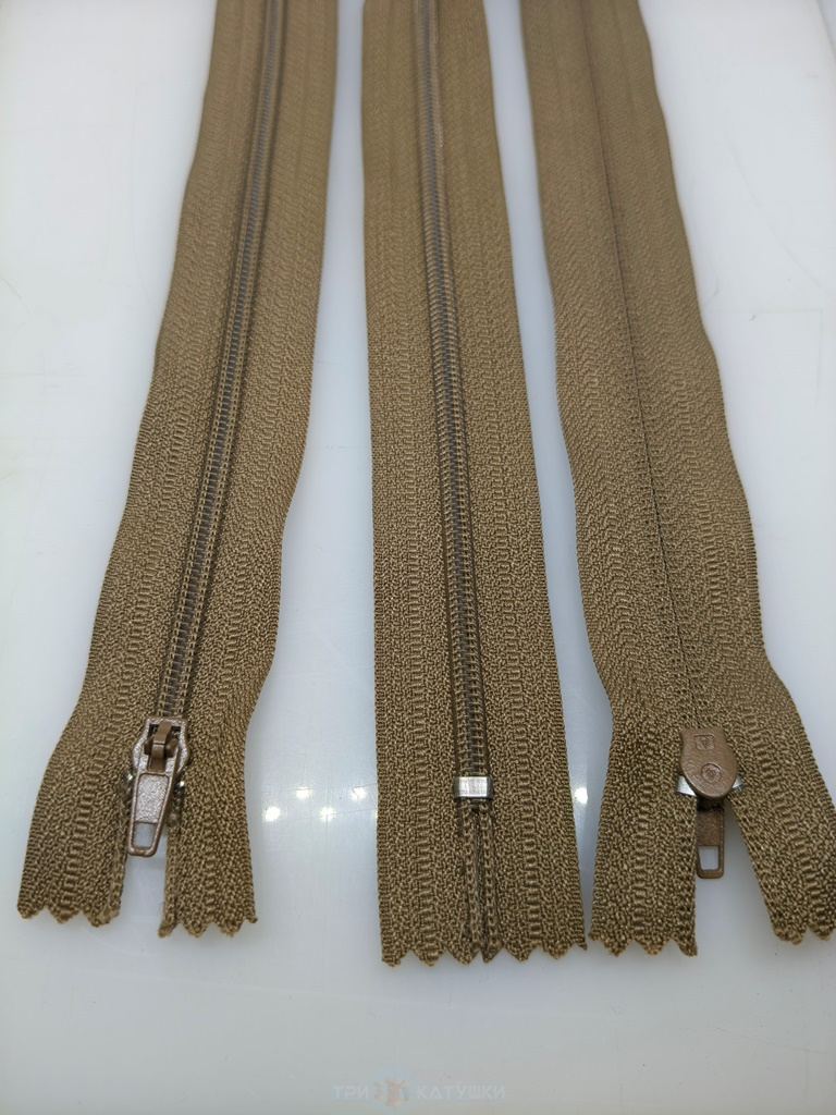 Молния спиральная тип 4 п/а (неразъемная) брючная 20 см №296 (563) Бежевый темный ( уп.50 шт.)