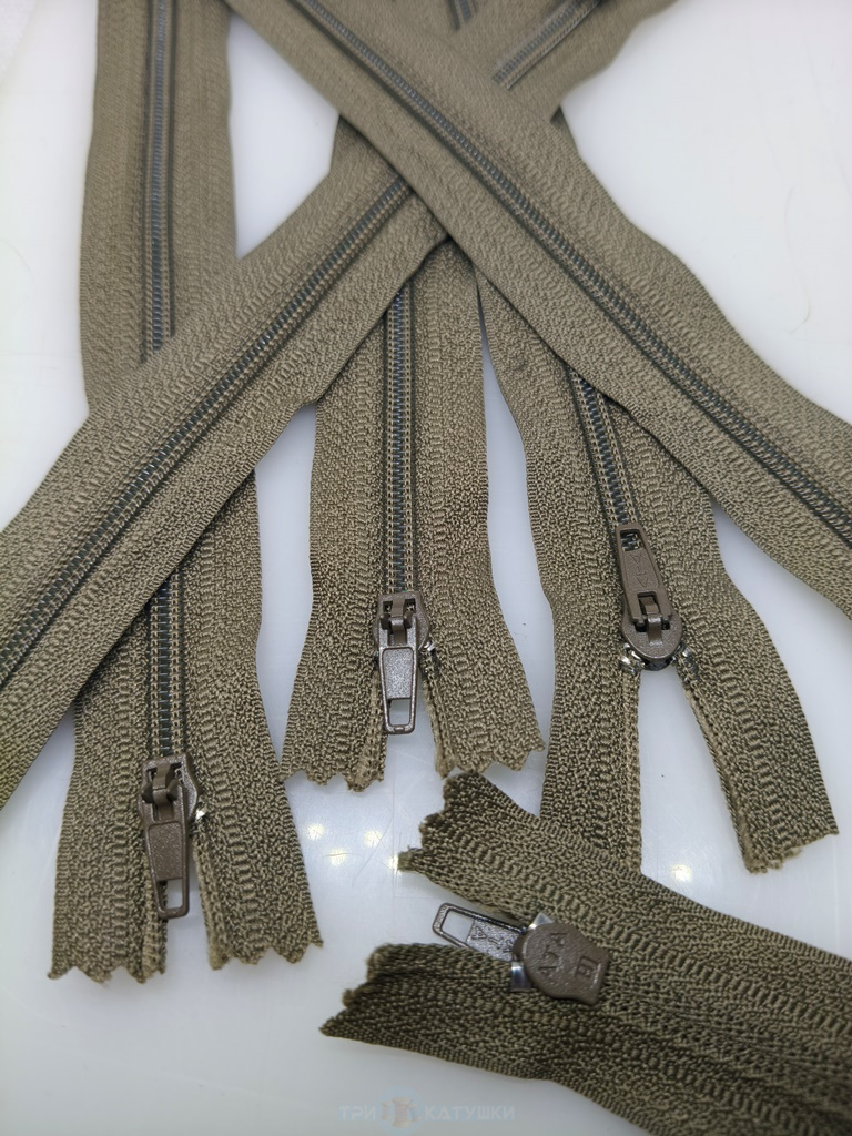 Молния спиральная тип 4 п/а (неразъемная) брючная 20 см №297 (564) Серо-оливковый ( уп.100 шт.)