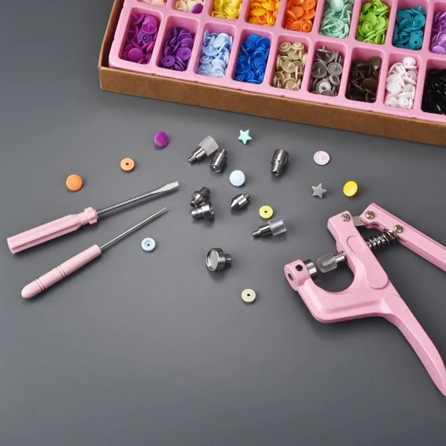 Набор фурнитуры для одежды №2 миди (кнопки + ручной установщик) розовый