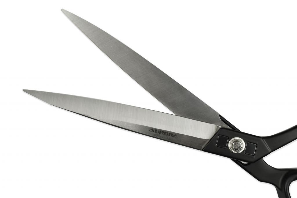Ножницы Aurora арт. AU 1209-120 Размер: 300мм Предназначены для раскроя многослойных, толстых и тяжелых тканей. Имеют цельнометаллическую, облегченную ручку, что гарантирует комфорт в работе. Длинные и широкие лезвия обеспечивают точный срез без зажевывания ткани. Изготовлены из высококачественной нержавеющей стали.