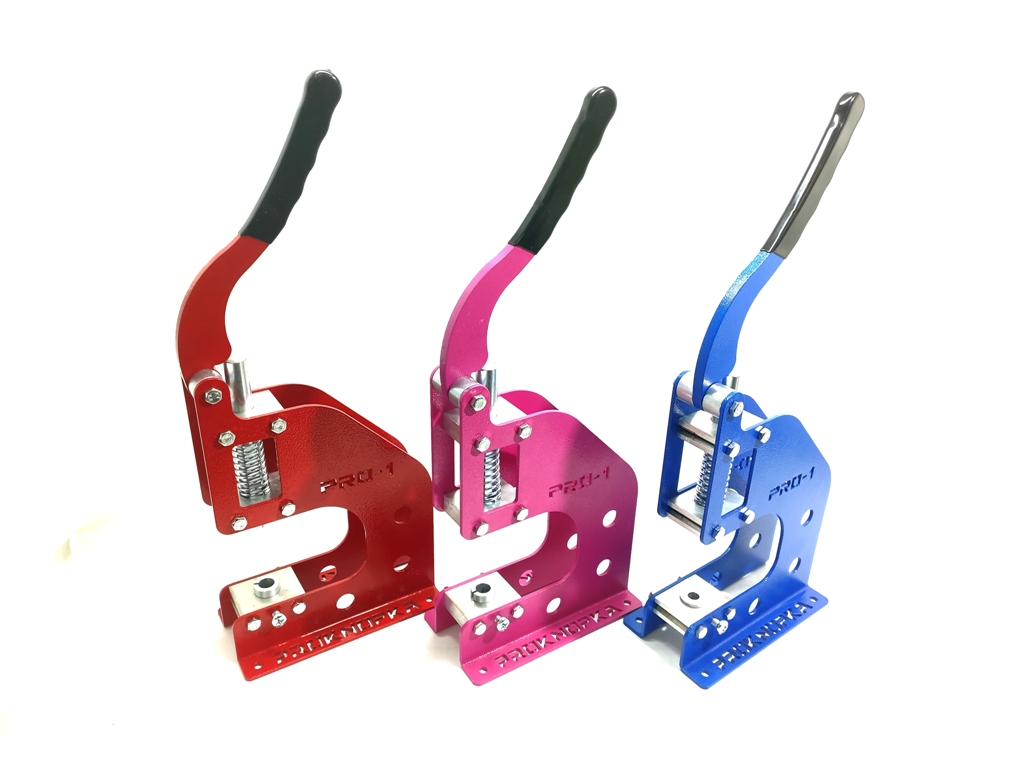Пресс PRO-1 предназначен для установки Кнопок, Блочек, Люверсов, Хольнитенов, Джинсовых пуговиц, пробивания отверстий, а также для обтяжки пуговиц.