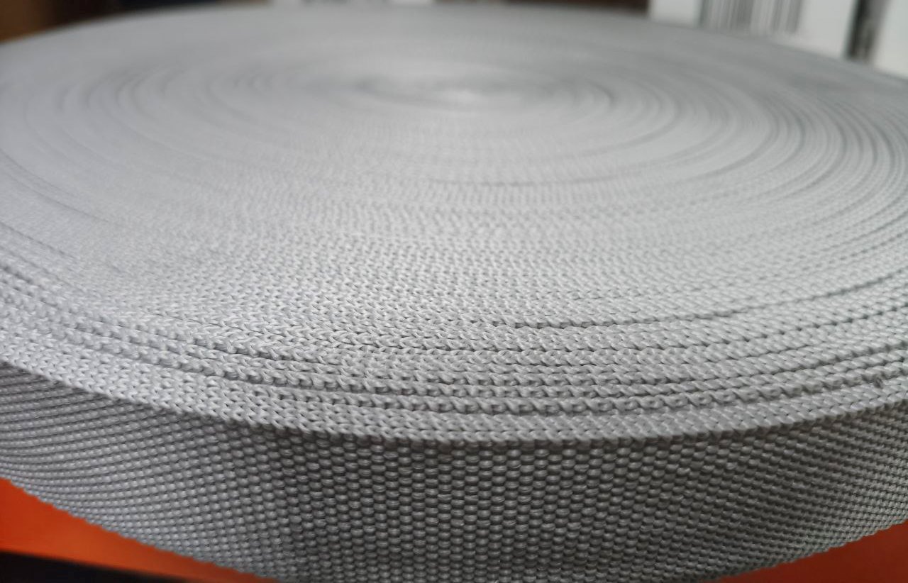 Текстильная стропа шириной 30 мм, плотностью 14 г/м, серого цвета, артикул 701, в упаковке 100 м — это плотная лента из переплетённых нитей, изготовленная в России. Она используется в пошиве одежды, производстве сумок, рюкзаков, туристического снаряжения, мягкой мебели и чехлов.Характеристики